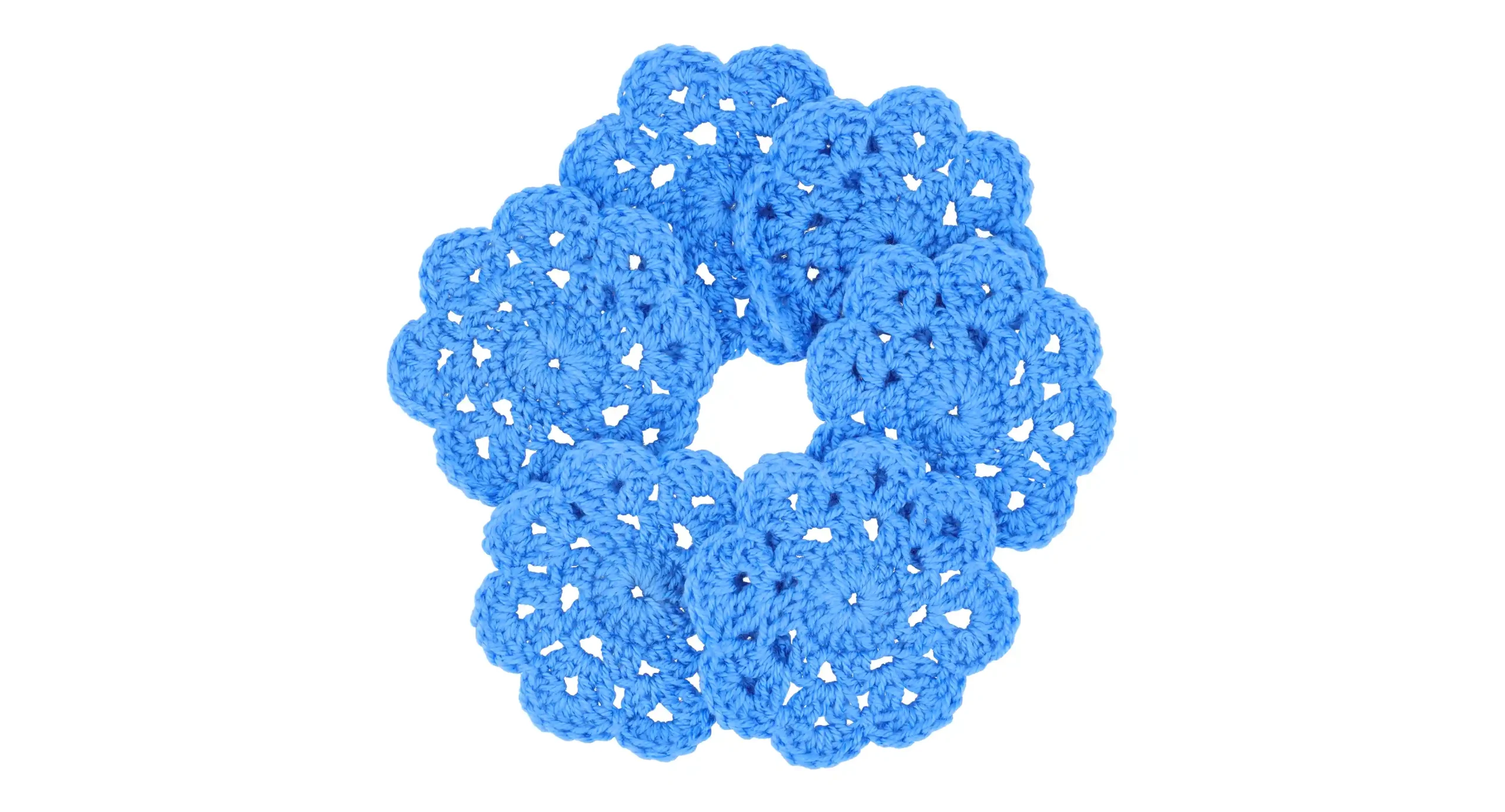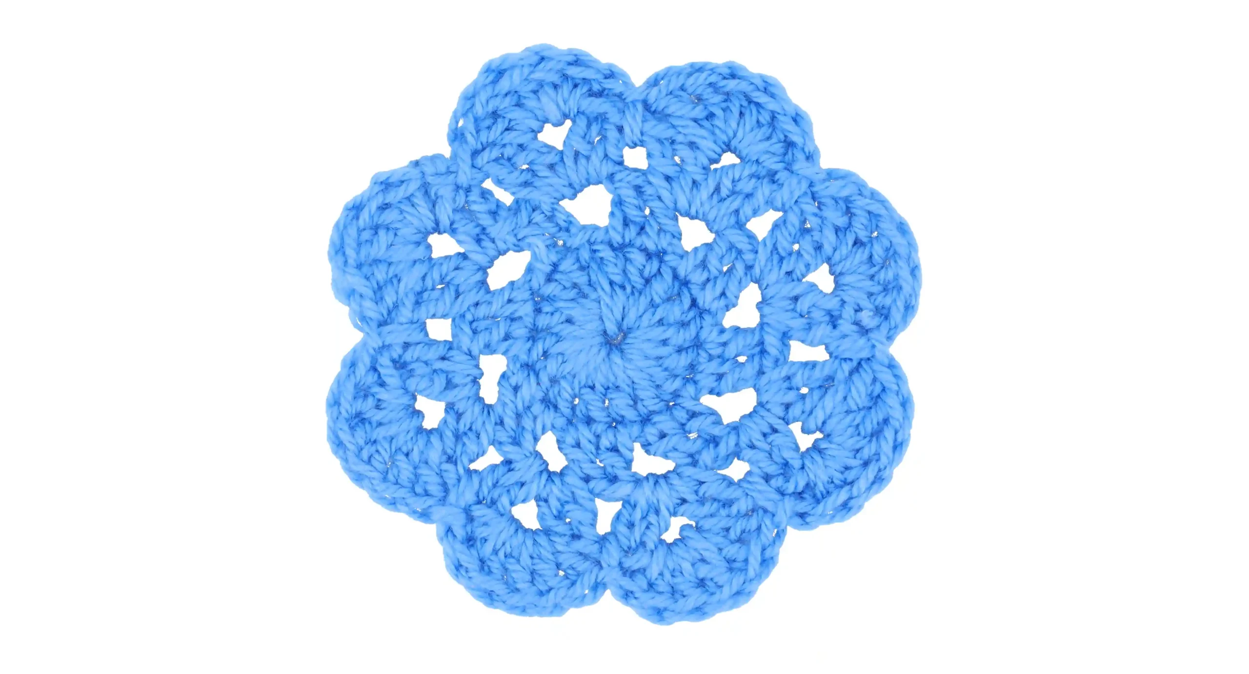 This charming, hand-crocheted coaster features a delicate flower shape in a vibrant azure blue, perfect for adding a pop of color and handmade charm to your tabletop.